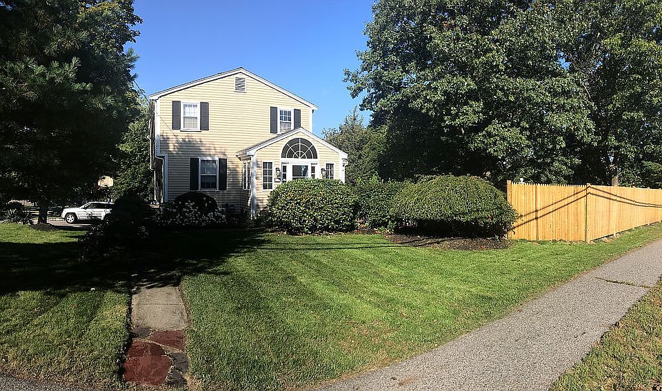 Nestled on a corner lot, this well maintained colonial is perfect for family living. The floor plan encompasses a welcoming efficient kitchen with breakfast bar and dining area. There is a formal living room, a cozy FP den, a great family room with a Palladian window, and 4 generous sized bedrooms. Boasts hardwood floors, lots of natural light, and an expansive deck that is perfect for basking in the sun or entertaining. Lower level features a casual play space and mud room. Bonus: newer roof and newer heating system, air conditioning, security and irrigation systems. This lovely home is perfectly positioned close to commuter rail and highway.