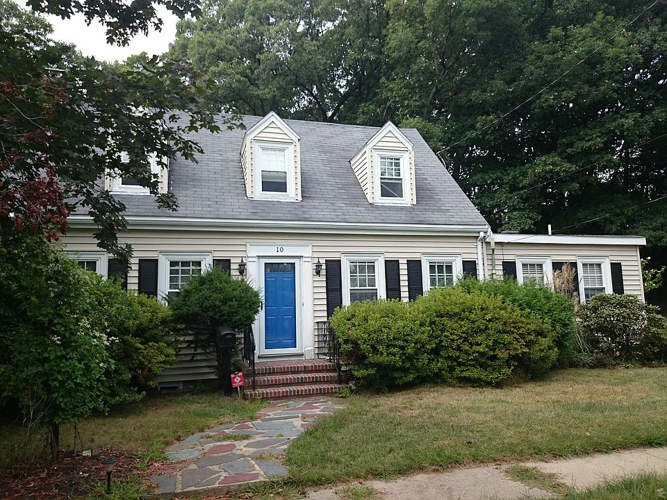 8 room, 3 bedroom, 2.5 bathroom cape (with colonial interior) available in West Roxbury on Chestnut Hill/Brookline line. Huge front to back living room with working fireplace, dining room with built in china cabinet, first floor master bedroom with newer master bathroom, spacious study with new wall to wall carpet, oversized eat-in kitchen with new stainless steel appliances, front to back upstairs bedroom with walk in closet/built in bookshelves/window seat/attached bonus room, sunny 3rd bedroom with walk in closet and window seat. Wainscotting, refinished hardwood floors throughout. Replacement windows and storm doors, blown-in insulation, newer forced hot air heat, newer central air conditioning, updated 200 amp electric. Spacious 2 car detached garage. Private back yard landscaped with many perennials and new patio. Move in condition.