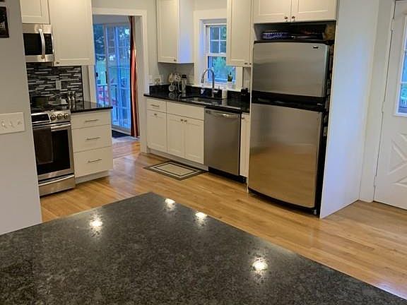 Come on By and Check out this Doll House/Cape Style Home tucked away on a quiet road in Wayland. This 2 Bedroom 1.5 Bath Home has been updated throughout with an open concept white cabinet Kitchen with stainless steel appliances, plenty of counter space and a large Island to enjoy a casual dinner or your morning coffee. The kitchen opens up to a spacious Dining Room with plenty of room to entertain. The first floor also has an updated Living Room with a Gas fireplace. This all leads to a Deck and patio with a fire-pit where you can enjoy the cool fall evenings. Upstairs there are two Bedrooms and a Full Bathroom. Both Bedrooms have ample closet space, and a tucked away additional storage area. You will enjoy a spacious Finished Basement which could be used as a Family Room, an office, or another Bedroom. iF you're looking to get into Wayland, this is the perfect home....it has nearly 1/2 acre of buildable land. Title 5 in hand, so this home is ready for it's next owner.