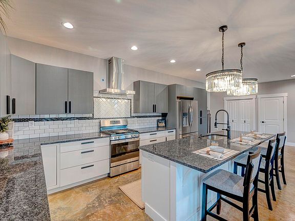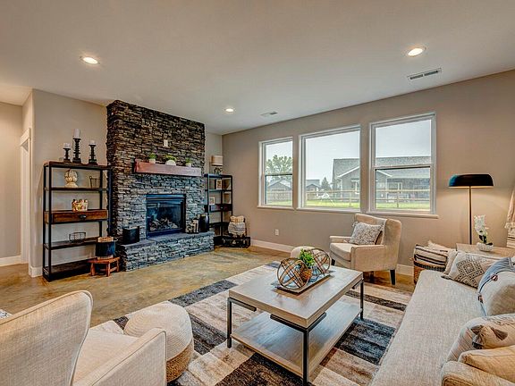 Classic features with a modern flair in one of Sheridan's most popular new neighborhoods. Dream kitchen offers a lot of counter space both for prepping and eating. The gray and white cabinet theme with dark gray countertops will compliment almost any accent color. The dramatic stone fireplace is the center piece for the great room, ideal for entertaining.