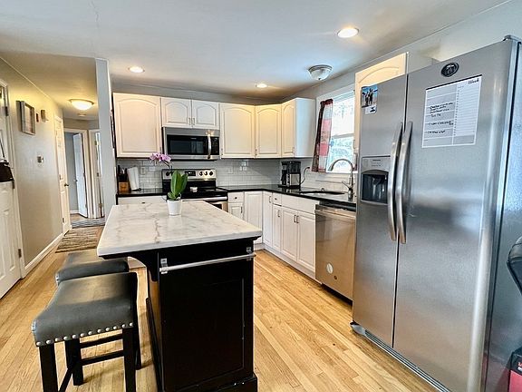 Welcome to this tastefully updated split-entry home nestled in a highly coveted neighborhood. The open-concept living and dining areas is full of natural light through the large windows and feature sleek flooring and a neutral color palette that complements any decor style. The kitchen is a focal point, boasting stainless steel appliances, granite countertops, ample cabinet space, and island. Retreat to the well-appointed bedrooms, each offering a tranquil haven for relaxation. The two full updated bathrooms feature modern fixtures and finishes. The lower level of the home offers a versatile space that can be used as a family room, home office, guest suite, or bonus area, currently being used as a home theater (projector and screen to stay). The private yard also features a newer above ground pool. Located in a sought-after neighborhood, this home offers proximity to local amenities, schools, parks, and highways. A short ride to beaches and mountains. Roof, electrical, water tank-newer