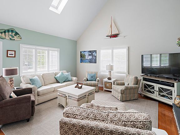 Welcome to this well-maintained home, tucked away on a quiet street in the heart of Katama. The sunny and bright 3-season porch with gas fireplace greets you upon entry. This flows into an ample eat-in kitchen with granite prep island, top of the line appliances and a wet bar with wine refrigerator. The large open living room with cathedral ceilings, an abundance of natural light and gas fireplace is the focal point of the home. An en-suite primary and separate powder room complete the first floor. Upstairs you will find 3 large bedrooms with a shared bath. Impeccable grounds are fully irrigated with apple +pear trees. Oversized deck, outdoor shower, firepit, garden shed and large stone driveway with granite apron + border finish the exterior.