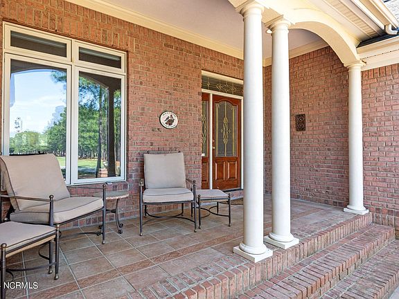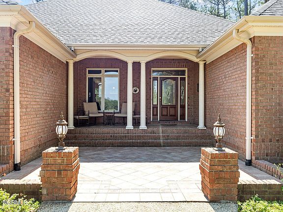 Located in the beautiful Village of Pinehurst (the ''Golf Capital of America'' and the site of the 2024 and 2029 US Open), this beautiful 2600sf, all brick golf-front home is in the gated community of Pinewild CC which boasts a number of amenities to include: 48 holes of champion golf, pool, tennis, pickleball, clubhouse, dining and driving range. Enjoy this home's single story living with lovely hardwood floors, crown molding and high ceilings. The large .81 acre lot backs up to the 10th hole of the Magnolia course and the front porch overlooks the Pinewild CC practice area. There are stunning views from any one of this single-story home's spacious rooms. A lovely entry from a large covered front porch leads into a spacious hallway offering a 1/2 bath and line of sight through to the great room accented with a 12ft tray ceiling, gas fireplace framed by floor-to-ceiling built-ins. The great room has an expansive wall of tinted windows which allow you to enjoy the lush back yard, just beyond the brick patio and view of the golf course. A formal dining room offers stunning views and vaulted ceilings accented nicely by a classic chandelier. The functional kitchen has 10ft ceilings, stainless appliances including a double oven and Sub-Zero refrigerator. There is an additional flex room just off the kitchen with a view of the front yard and practice range. The spacious primary suite has access to the back patio and large windows to take in the scenery from the back yard. Walk-in closet, enclosed lavatory, double vanity, large whirlpool tub, custom tile work and a walk-in tile shower make the ensuite bath a perfect private oasis. The split floor plan offers separation between the primary and an additional two bedrooms both adjoined by an accommodating and convenient Jack & Jill bath. With a transferrable Pinewild CC membership. ALL OFFERS DUE TODAY 5/18 NO LATER THAN 4:00 PM, PLEASE.