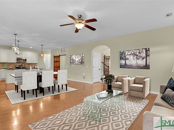 Welcome Home! This beautifully-maintained craftsman-style home is located on a corner lot in the highly sought after Richmond Hill Community. As you enter the home , your are greeted by an office or flex room adjacent to the formal dining room. The open floor plan concept has no carpet and is excellent for large gatherings. The downstairs bedroom and newly renovated luxury bath is every guest dream! Upstairs you will find the owners suite with a comfortably sized sitting room. Behind the barn door awaits a custom built walk in closet. The newly renovated owner's suite bath is equipped with a separate oversized tiled shower and tub. In addition to the owner's suite , there are three nicely sized bedrooms all with walk in closets. This home has many unique upgrades and won't last long! The neighborhood has many incredible amenities to offer. 10 Glen is centrally located between Hunter Army Airfield and Fort Stewart in addition to being close in commute to the future Hyundai???????????????????????????????????????? Plant.