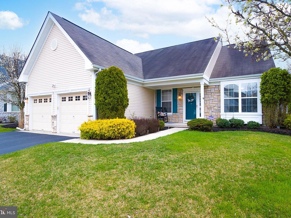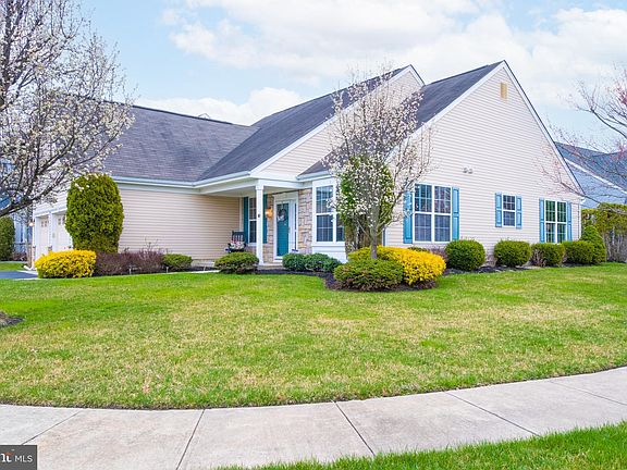 Your new home awaits! Come see 10 Goldenrod Lane, a cozy, cottage-style 2-Bedroom 2-Bathroom home located within the modern and active 55+ community of Village Greenes. This home is situated on a quiet corner lot amongst beautiful landscaping and meticulously maintained homes. Beyond the welcoming front porch and cheerful front door, enter the main hallway to find a formal dining room with custom plantation-style shutters. To your left, you'll find an access hallway, which holds the mud room/laundry room and leads to the attached 2-car garage with automatic doors. Walk down the main hallway to enter the kitchen with ample cabinet and counter space, as well as an eat-in area and pantry cabinet. The adjoining living room is private and spacious, located at the back of the home. The Master Bedroom includes a walk-in closet and en-suite bathroom with soaking tub and stall shower. The second bedroom is located across the hall from the Master Bedroom and adjacent to the second bathroom, located in the hallway. Do you like to grill? This home has a private patio off the back of the eat-in kitchen, making al fresco dining an everyday option! Village Greenes is beautifully maintained with grass cutting and snow removal services provided by the community association. The Clubhouse includes a pool, tennis court, exercise room, a ballroom, craft room, library, and card rooms. The beautifully maintained sidewalks traverse the entire community, allowing you to get all of your steps in and enjoy nature. Marlton is located in the Philadelphia metro-area, 30 minutes to Center City Philadelphia, one hour to the beaches and Atlantic City, and 1.5 hours from New York City. This area of South Jersey offers access to shopping, dining, and world class healthcare within minutes from home. Don't miss out on this chance to join a great community!