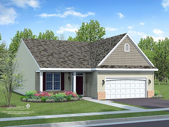 The Amelia Model offers an open concept floor plan that integrates the Kitchen with Dining Room and Great Room. Enjoy the convenience of one-level living with the Owner's Suite, Guest Bedroom and second full Bathroom on the first floor. Full basement is also available. A two car garage comes standard with the Amelia floor plan with the option to add walk-up storage space. Option for brick or stone exterior accent is available. Energy efficient features include Low "E" insulated tilt-in windows and high-efficiency natural gas HVAC. Inside you will find standard 9-foot ceilings, GE kitchen appliance package, and comfort height vanities and toilets. Price reflects Amelia Traditional with crawl space. Slab and Full basement is also available. See Sales Manager for details.