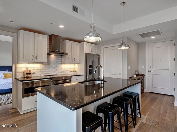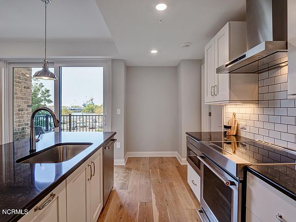 Welcome home to the highly desired River Place community located in the heart of downtown Wilmington. This exceptional, modern floor plan includes a combination kitchen, spacious eat-in island with quartz counter tops, stainless Kitchen Aid appliances, drawer style microwave and designer finishes. Upon entering this gorgeous condo you are greeted with wonderful picturesque windows that welcome natural light and sunshine. Master Bedroom boasts a luxurious double vanity, tiled shower and walk-in closet. Engineered hardwood floors throughout, tiled bathrooms and plenty of pocket doors. Den functions nicely as an office or guest space and includes an additional full bath! Enjoy your morning coffee or evening beverage from your private balcony and take in fantastic views of the Cape Fear River and USS North Carolina Battleship. Easy access to your reserved/ assigned parking space in the River Place parking deck. A fun retreat with unparalleled amenities including roof top pool, hot tub, fitness center, owners club room and concierge service. Enjoy fine restaurants, River Walk, entertainment and more just steps outside your door. Parking fees are included in the mls dues.
