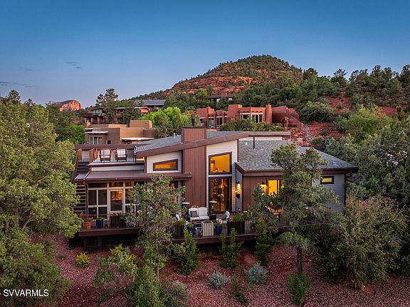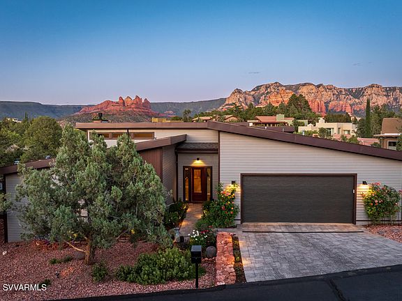A unique Zen Contemporary sitting on .26 acres in the sought after subdivision of Rolling Hills Estates. This 2023 built home is 2326sf with 3BR, 2BA & a 2 car garage high enough to accommodate a lift for that car collector. Before you enter the home, you will notice the paver pathway lined with roses, annuals & perennials. Walking in, your eye is taken immediately to the high, custom beamed 17' vaulted ceiling, gourmet chef kitchen, comfortable dining room and your great room w/gas fireplace ready for entertaining. Clerestory fixed windows above, allow plenty of natural light as your eyes drift to the privacy deck with its gas fire pit, water feature & views of the Red Rocks. A small screened in porch with serving window from the kitchen provides an insect free place to serve. Adjacent to the privacy deck stairs lead to the rooftop deck providing 360-degree red rock views! The primary suite lures you with a spa like atmosphere, custom designer paint, marble counters, separate his & her vanities, framed mirrors and beautiful walk-in shower with features to soothe you after a day of hiking (try out the three invigorating body sprays!). If that's not enough, we have an outdoor hot tub area w/private surround waiting for you! You can't help but enjoy the patio - full of perimeter flora flowering plants. Come and experience everything this custom gem has to offer!