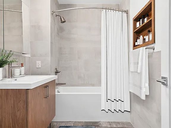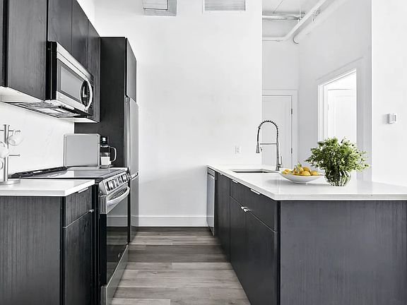 Welcome to Grand Avenue Lofts Discover luxury living with these thoughtfully designed apartments, offering an impressive array of features. The expansive, loft-like ceilings and oversized windows flood the space with natural light, creating a bright and airy atmosphere. Elegant hardwood flooring runs throughout each apartment, adding warmth and a touch of sophistication. The open-concept floor plans provide flexibility, perfect for a variety of lifestyles. The kitchens are a modern chef's dream, boasting rich dark wood cabinetry, high-end stainless steel appliances, and stunning marble backsplashes that add a sleek, refined touch. Whether you're entertaining or enjoying a quiet meal, the designs ensure both beauty and function. Spacious layouts extend to generous closet space and contemporary bathrooms, offering sleek finishes and thoughtful design details. Located between the vibrant neighborhoods of Clinton Hill and Fort Greene, Grand Avenue Lofts delivers the ideal blend of charm and convenience. Residents will enjoy access to parks, a thriving restaurant scene, and seamless public transportation options. Experience Brooklyn's best in a home that offers both comfort and elevated style. Images are for illustrative purposes and may not reflect the actual unit. New residents receive a 6 month gym membership
