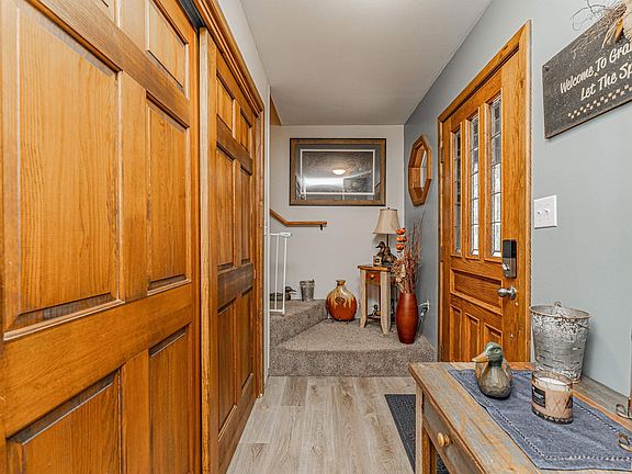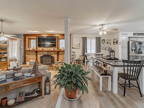 Rustic charm twisted with modern updates await you and yours with this choice 3 bedroom, 2 full bath two story brick/wood sided home situated on a mature 200X250 1.15 acre corner lot just minutes from town within Grand Oaks Estates/CEL district! Main floor of home boasts an inviting foyer, sunken living room with woodburning fireplace, stunning newer open kitchen/dining concept with soft close cabinetry, top of the line appliances, solid surface countertops, and breakfast bar area, tiled comparted bath, and a roomy laundry/mudroom area. Upper level boasts three nice sized bedrooms with large closets and great floor space in addition to a gorgeous full hall bath that was totally renovated in 2023. The partial basement features an 11X11 den/office, 14X13 rec room, mechanicals, and great storage/work space. Property features a covered front porch, expansive rear deck, 2+ car attached garage, 2+ car detached garage with an attached lean to, storage shed, Andersen windows, newer main floor HVAC (upper features electric baseboard heat), and all appliances (washer and dryer new in late 2022)! Prime setting and home -- A MUST TO VIEW!