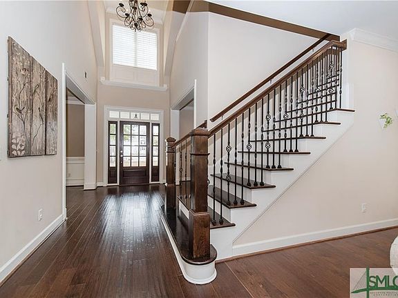 A life of luxury awaits you in the heart of Pooler. 10 Grand View Court boasts one of the largest lagoon view lots in the gated Forest Lakes community. Perfect rocking chair porch makes way to an impressive foyer entrance. The sunny, open floor plan has a master suite on the main floor featuring a custom built walk in closet. Upstairs there are four bedrooms, each with a walk in closet, and a 27x16 room that can be finished for an extra bedroom or used for additional storage. Upgrades include dual cooling units, coffered dining room ceiling, high end flooring, solar powered water heater, jetted master tub, screened in back porch and a 3 car garage.