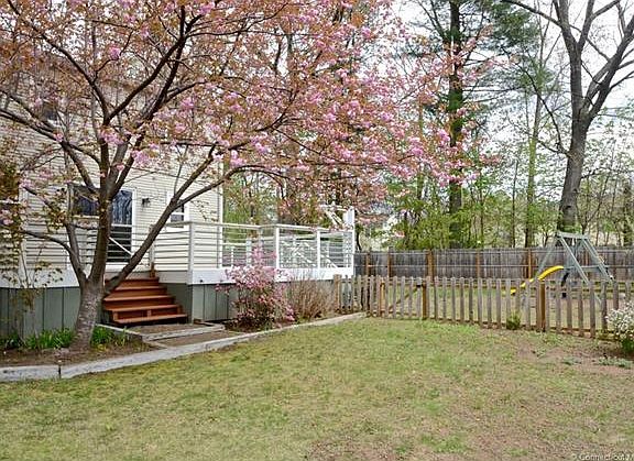 Move right in! Brand new windows & carpeting. Newer roof, chimney, and vinyl siding. Large remodeled eat-in kitchen with slider to wrap around deck and fenced backyard. Master BR with walk in closet. Family room/den off of kitchen could also be a formal dining room. Office or potential fourth bedroom on first floor. Additional lower level recreation room (approx. 300 sq. feet) not included in square footage. Central air! Fabulous lot and location--walk to park and schools and shops or hop on the highway for a quick commute.