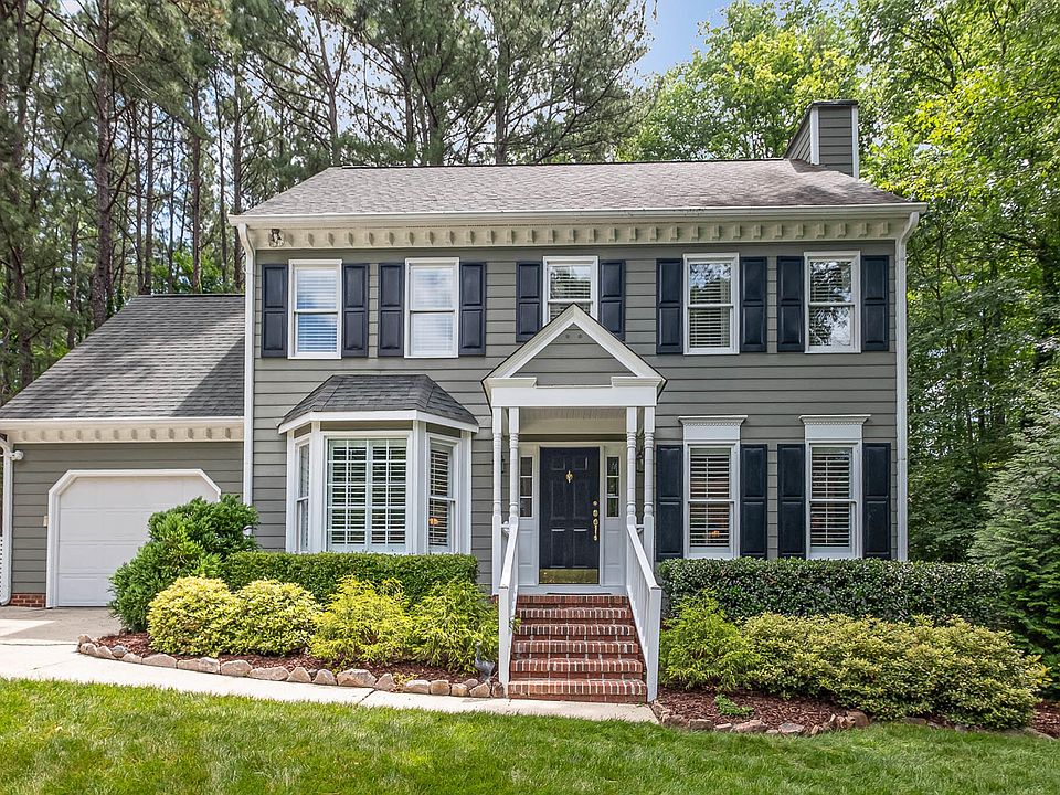 Impeccably Updated Woodcroft Home on Gorgeously Landscaped Yard! Every attention to detail was done with this home, inside and out! Step-down living room w/brick face fireplace, kitchen w/ white kitchen cabinets, granite countertops, and stainless appliances, breakfast nook w/ bay window, formal dining room also w/ bay window, second floor primary bedroom w/ dual closets & bathroom w/ vaulted ceiling. Bedroom converted to office. Unfinished walk-up attic! Fresh paint, bamboo flooring thru out, architectural shingles, and many more finishing touches! Greenest grass compliments established plantings! Woodcroft offers swim & tennis club, extensive walking trails, playground, and soccer fields! Convenient to Duke, UNC, RTP, I-40, and great restaurants & shopping! This home is truly a Must See! Note: Showings start Saturday 6/8 at 3:00.