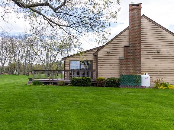 Serenity is what comes to mind in this custom one level meticulously maintained home.You'll love your large living room with cathedral ceilings, lots of natural light from two skylights and two sliding glass doors. One door leads to your sun room, the other to your sprawling deck & large backyard over looking the golf course. The view is perfectly peaceful. In the custom kitchen you will find granite counter tops, an island, a cook top stove & lots of cabinets for storage. The dining room with its large window is inviting. Follow down the hall to the bedrooms.The master bedroom is the perfect place to unwind,an inviting space with a comfortable window seat for relaxing. Plenty of closet space with double closets as well as a large walk in.The en suite master bath is custom tiled with double sinks,walk-in shower and soaker tub.The other two bedrooms have ample room and double closets. All this w/heated garage w/utility sink,a fully wired generator back up,& heated basement for more room