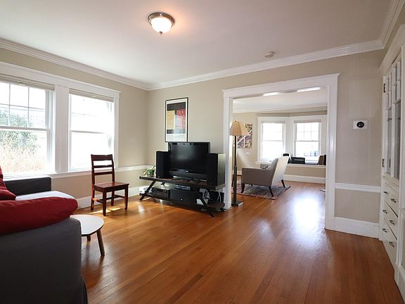 Spacious and bright 2 bedroom in Brookline. Step into the living room with bay windows allowing tons of natural lighting along with hardwood floors throughout. Separate dining area and updated kitchen with island countertop and dishwasher. Private laundry in the basement and 1 garage parking spot included. Shared backyard space with private deck, pet friendly! Great location with easy access to the Green Line, Brookline Village, Star Market and more... Available July 1st! Tenant responsible for gas and electric.