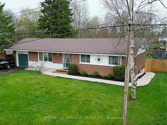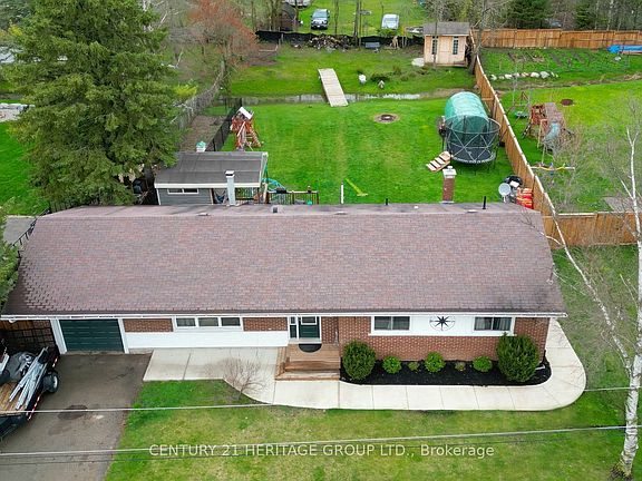 Family friendly open concept brick bungalow on a large lot situated in the village of Everett. Updated, kitchen with gas range large island with breakfast bar and storage, modern bathrooms, ensuite with large closet and cabinet and shower. Large lower family room for entertaining has wet bar, fridge and built in cabinets surround the electric fireplace. TV and mounts in family and great rooms are negotiable. Fenced backyard with seasonal creek for water effect has two level deck and gazebo on upper deck, and large garden areas and 2 sheds for extra storage. Paved driveway and poured cement walkway patios.