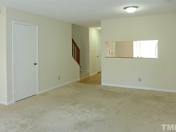 Townhome located minutes to Duke University. Main level has combined living/dining space with carpet. Rear exit from living room leads to back patio, which has attached storage closet. Kitchen has pantry closet; appliances included. Half bathroom completes main level. Both bedrooms are on 2nd level; both have carpet. Master bedroom has private vanity space with closet and direct entry to shared full bathroom. Laundry closet is on 2nd level; stacked washer/dryer included. Reserved parking space in front.