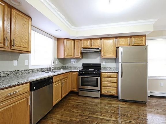 2004 new construction end townhouse unit on Fort Hill. Currently leased at $4,200/month to 6/30/23, this is a fantastic investment property or owner occupy at lease end. The lower level features a garage and a large storage and laundry space. The second floor has an L shaped kitchen with stainless steel appliances, gas cooking, hardwood cabinets and granite countertops, an adjacent living room with access to a back deck and yard as well as a 1/2 bathroom and a spacious bedroom/additional living area. The top floor has 3 bedrooms and two baths including a primary bedroom with en-suite. Finishes throughout include dark stained hardwood floors and crown moldings. Tankless hot water. In unit side-by-side laundry. Fantastic location close to public transportation, shopping and restaurants. An excellent value, not to be missed.