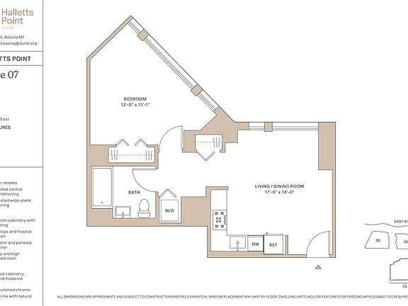 FARE Act Disclosure. This listing is intended to be used by prospective renters and may not be republished without the prior written consent of The Durst Organization. Absent an express written agreement or acknowledgment to the contrary, The Durst Organization and its affiliates (1) do not utilize the services of third-party brokers or agents in connection with the rental of residential apartments and (2) will not assume responsibility for any brokerage fees incurred by a prospective renter. The Durst Organization and its affiliates will not charge or collect fees from a prospective renter except for such fees as permitted by law and disclosed to the prospective renter.
