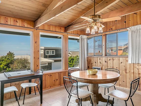 OCEAN VIEW! Enjoy views of Neahkahnie Mountain and the ocean. Located less thank a block to the beach. Adorable kitchen & breakfast bar. Thoughtfully crafted woodwork. Wood burning fire place adds the perfect ambiance against the exposed wood beam ceilings. In addition to the cozy upstairs bedroom there are two bedrooms downstairs. The large second level wrap around deck & spacious private backyard is perfect for family gatherings. This
