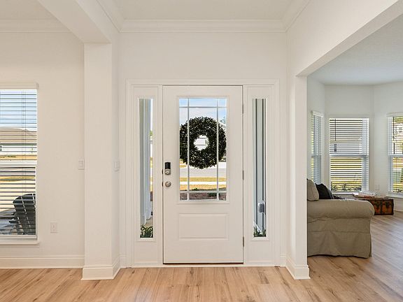 10 Hammock Circle welcomes you to your beautiful 5 bed, 3 bath home with over 3000 sq ft located in Hammock Oak Estates. Walking into the foyer, you are greeted by a formal dining area and a perfect space for a study or office. Continue into the open family room, kitchen, and breakfast area with sweeping views into the fenced back yard. The covered back patio is perfect for enjoying morning coffee as the sun rises over the pond and naturalized, wooded area just beyond the yard. Lot is one of the largest in neighborhood at nearly 1/3 acre. The kitchen has gorgeous quartz countertops with undermount sinks with water filter and stainless-steel Whirlpool appliances. Sellers have added a gray backsplash to make it perfection! This split floor plan boasts 5 bedrooms. The owner's suite will be your relaxing haven complete with a luxurious ensuite with separate soaker tub and oversized shower. Four additdional bedrooms with large closets and 2 more finely finished bathrooms close at hand give everyone their own space. Bonus features include blinds throughout, gutters, sprinkler system with yard well, and smart home features! This home is move-in ready. Even the washer and dryer will convey.