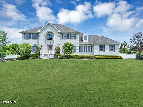 Located in prestigious Freehold Pointe, this meticulously maintained 4100sf Turnberry model has a 2 story grand foyer opening to a formal living room & dining room w/gleaming hardwood floors. The sunlit upgraded kitchen features Black Galaxy granite countertops, center island, walk in pantry & butlers pantry. Kitchen opens to a spacious Family room with gas fireplace & triple windows overlooking the backyard. The sweeping staircase leads upstairs to an expansive primary suite having a sitting room, double walk in closet, & oversized Bath with a Jacuzzi whirlpool. This level also features a Princess suite and Jack & Jill (3 addl BRs + 2 addl FBAs). The 1st floor boasts a bedroom and full bath perfect for a guest suite or multigenerational families. The full dry basement is waiting for your touches.