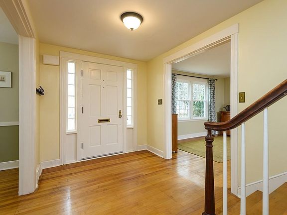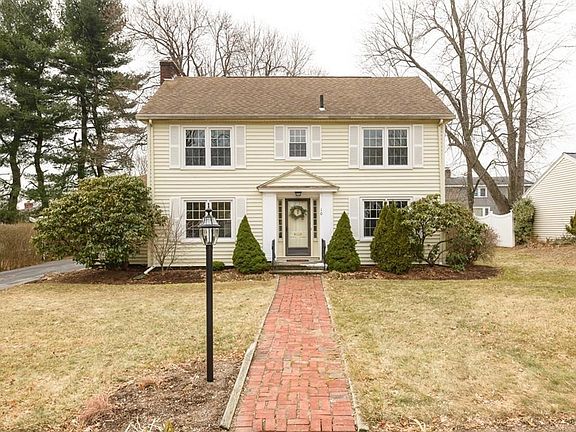 Charming 4 Bedroom, 1 1/2 Bathroom Colonial close to the center of town. Totally rebuilt in 1953 & updated since - vinyl siding, replacement windows, hardwoods throughout. Front to back living room with fireplace, cozy sunroom, formal dining room with corner cabinet and kitchen with pantry. Main floor bedroom or office. Upstairs - Full bath & Spacious bedrooms with generous closets. Large Master Bedroom has additional walk-in closet,office or nursery. Detached 2 Car garage. Level private fenced yard with garden.