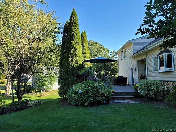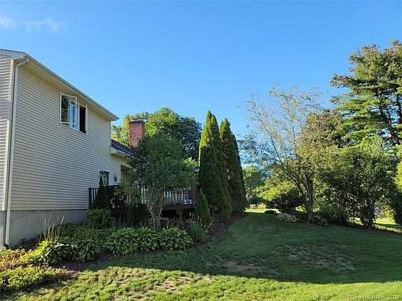 Lovingly maintained 4 bedroom, 2.1 bath Saltbox Colonial nestled in the heart of Tariffville's most desirable neighborhood... the Heights! From the maintenance free vinyl siding to the new roof in 2020, public water & public sewer, central air, and newer replacement windows... the ease of home ownership abounds. As you enter this beautiful home you'll be welcomed into the inviting living room complete with vaulted ceilings, a corner fireplace, and hardwood floors. Adjacent to it is the first floor bedroom that can easily double as the perfect at home office. You'll also find a spacious dining room off of the sun drenched kitchen and family room with easy access to the deck and private backyard. In the lower level there is a a bonus room perfect for your at home work out, game night or movie night! Upstairs there are 3 bedrooms and 2 additional full baths along with a 2nd floor laundry. The spacious master bedroom can't be beat with ample closet space throughout the entire upstairs. You'll find fresh paint and hardwood floors throughout most of the house as well. The amount of space in this home is a rare find in this neighborhood, act fast before you miss your chance!