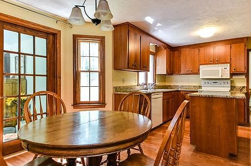 Fantastic location in quiet neighborhood setting for this lovely 4 bedroom Colonial style home within close walking distance to town, schools, park and Common. Enjoy the private and serene backyard setting from the home's generously sized 3 season enclosed porch with double sliding doors. Recent improvements on the house include: new hardwood floors in the kitchen, family room, living and dining rooms in 2014, new granite counter tops in kitchen and upstairs bath in 2014, brand new wall to wall carpet in finished basement area, new high quality windows in 2011 and new roof installed that same year. Nice size eat in kitchen comes with cherry kitchen cabinets. Home also offers an over sized two car garage that allows homeowners extra storage space.