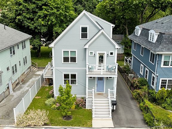 Welcome to your dream home in the heart of Roslindale! This nearly New Construction (2022) 4 BR, 3.5 bath home offers a 2 car garage, private yard & deck. Step inside & be captivated by the luxurious features this home presents. Open floor plan flows through main level. Chef's kitchen, quartz counters, SS appliances, walk in pantry & spacious laundry room. Gas fplc, A/C, on demand H20. The 2nd level has 3 BRS (1 ensuite & 1 w/private balcony) & 2 full tiled baths. Continue up to the 3rd level where you'll find another ensuite, complete w/tiled bath, a room sized walk in closet/dressing room & sky lites. With 2 en-suites this home is ideal for multi-generational living or hosting guests in style. 3 levels of modern living w/hardwood floors throughout. Full basement waiting for your finishes! The 2 car garage boasts abundant storage space via the pull down staircase to a 2nd level. Close proximity to all the dining & shopping in Rosi Village, Commuter Rail, Arboretum & Medical Area.