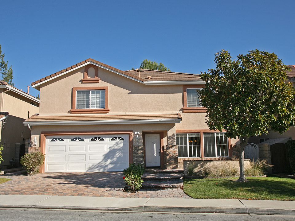 Enjoy entertaining in this spacious, well cared for 5 bedroom home tucked away on private cul-de-sac. This well designed floor plan is open and bright with convenient first floor bedroom and full bath. There are tasteful upgrades throughout. Cooking is a pleasure in the modern kitchen with lots of cabinets, quartz counters, pretty glass tile backsplash, large center Island and walk in pantry with custom shelves and wine rack. There are sliding glass doors to a private back yard with fruit trees, patio with cover and artificial grass, perfect for a barbeque. Relax in the adjacent family room with custom entertainment center and cozy fireplace. On the 2nd floor you will find gleaming hardwood floors, 3 sunny, generously sized bedrooms plus the large master bedroom, master bath with large shower and separate soaking tub. A delightful, ready to move in home, conveniently located to schools, Rancho Santa Margarita Lake, shopping, freeways, parks and best of all NO HOA or MELLO ROOS.