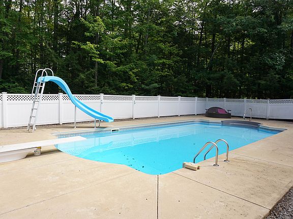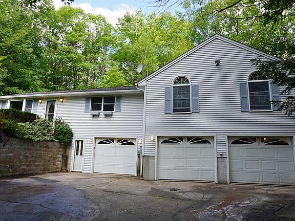 Spacious 4-5 bedroom Raised Ranch plus additional 30x30 detached oversize garage with studio above all situated on 2.38 acres! Open concept floor plan with a bright eat-in kitchen, large living room with bay window and hardwood floors. Master suite with cathedral ceiling, full bath and walk in closet. Three more good size bedrooms on the main floor. Lower level has a tiled family room with wood stove, laundry, office and a huge 5 car garage! The additional heated detached 2 car garage is great for a workshop. With the 900sqft studio above it gives you many opportunities. Behind the garage you'll see a fenced in heated in-ground pool with slide. A lot to see and in a great location!
