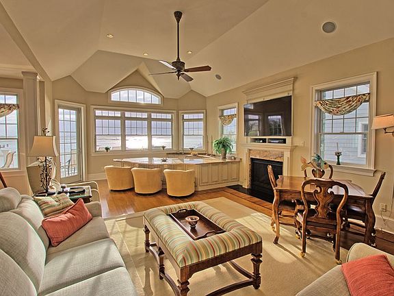 EXTRAORDINARY BAYFRONT ESTATE. This oversized lot is ideally situated at the base of Salmon Lagoon and offers breathtaking, wide-water views from all three stories. The expansive home has five bedrooms, five full bathrooms (all en-suite), and three half bathrooms. Because of the lot size, every room inside this 5,025 square foot retreat is grand. The sheer scale of the home is noticeable immediately upon entering the front door, as a gorgeous, three-story staircase is prominently featured. The spacious first floor family room allows for easy access to both the rear yard and a screened-in porch. The family room is beautifully finished and offers surround sound, a fireplace, an extensive lighting and trim package, and a full wetbar. Also on the first floor are two large bedrooms, two full, en-suite bathrooms, and two half bathrooms - one is situated adjacent to the family room and the other in the laundry area, allowing for easy access from the pool. The second floor great room is truly grand. Beautiful bay views are available from every location in the entertaining space. The kitchen is well equipped with custom cabinetry, high end appliances, a large center island and a walk in-pantry. The living room is the perfect place to kick back and relax. Multiple seating areas, a fireplace, and a full bar with a granite top make this space perfect for entertaining friends and family. The rear, second floor deck is expansive and is the perfect place to watch the sun drop beyond the lagoon. The second floor also features two bedrooms with two en-suite bathrooms, plus a half bath for the entertaining space. The third floor, which is dedicated entirely to the master suite, is the perfect retreat, featuring huge master bathroom, a walk-in closet, a second laundry room, and one the best master bedroom views you will find in town. Other features include a four-stop elevator, two car garage with plenty of additional parking out front, beautiful mature landscaping, every non-landscaped area is outfit with pavers, plantation shutters in all bedrooms and bathrooms, two boat slips and a beautiful pool in the rear yard. Don't miss your opportunity to own this custom masterpiece on one of the nicest streets in town.