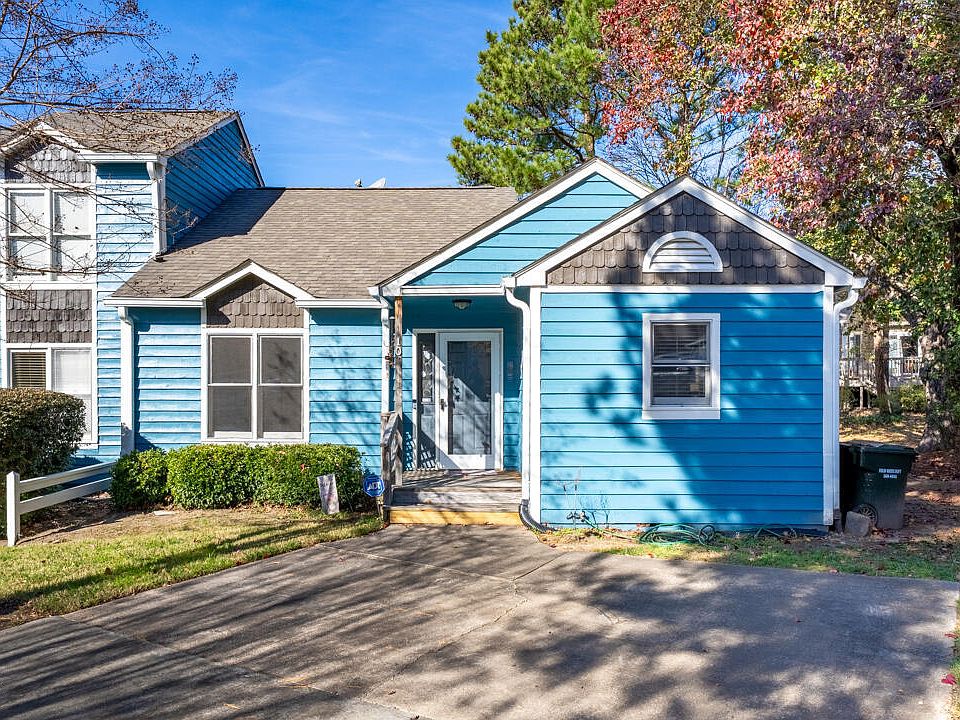 Your serene Woodcroft retreat awaits! This cozy 2 bed, 2 full bath townhome has it all! Step inside on the entrance hardwoods and enjoy all this home has to offer. Multiple skylights throughout along with 2 sliding doors and oversized windows give natural light from all angles. New carpet and new paint right before listing will give it that new home smell. The front room could be a bedroom, gym, or home office and the walk in closet in the primary eliminates having to store away your off season clothes. 2024 saw the replacement of the HVAC system and Water Heater and recently the home was given a full exterior paint job by the HOA so all major systems of the house have been taken care of. KItchen was fully renovated recently also. This house is truly move in ready! Woodcroft offers no shortage of shopping and greenspace for those crisp fall days. Come tour today!