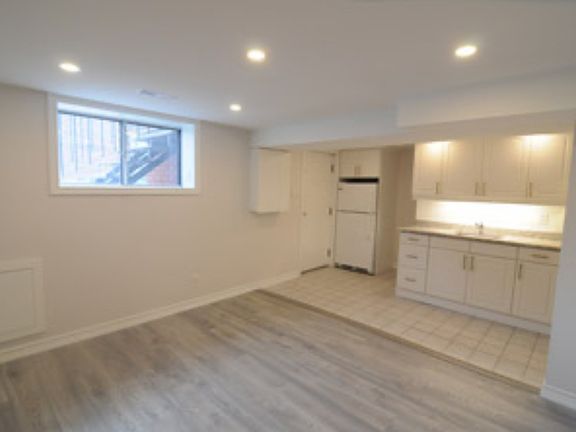 Renovated one bedroom basement apartment. Private entrance. Includes a full 4-piece bathroom. Hardwood floors and ceramic tiles throughout. Open concept living-dining area. Large sized windows, great source of natural light. Lots of storage space and secured storage area for bicycles in mud room as well. Located in one of the most sought after neighbourhoods of Little Portugal on Dundas. Close to all amenities such as TTC, restaurants, bars, cafes, bakeries, grocery stores, shopping mall and coin operated laundromat too. All within walking distance. A must see. $1,800.00 per month. Hydro extra. Landlord pays for water and gas. Tenant pays for 1/2 of electricity. Last month's rent due at signing. First month's rent due on move in date in exchange for keys. No smoking allowed. Minimal 60 days notice required prior to moving out. Tenant is responsible for their own garbage/recycling collections alternating weekly every Wednesday.