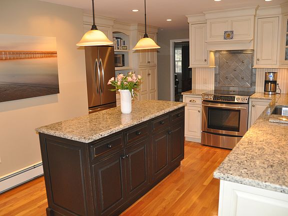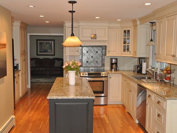 Shown by appointment only. 4 Bedroom, 2 ½ Bath, Hip Roof Colonial home in sought after family neighborhood. Located on Cul de sac street with all that Duxbury offers; great schools, beaches, and many cultural and recreational amenities. Immaculately maintained and in move in condition, with updated custom kitchen, updated lighting, hardwood floors throughout, and remodeled tiled bathrooms. Two fireplaces, vaulted ceilings with sky lights in Family Room and MBR. Fully finished and heated walk-out lower level with home office and sliding glass doors to Bluestone patio. Large deck off kitchen with furniture included. 2 car garage, quaint Pine Harbor storage shed, professionally landscaped with irrigation system. Full attic storage. Oil FHW heat with 4 zones, city water, septic, approximately 2600sf GLA (w/LL) on 1.03acres. Many extras included with home; all stainless kitchen appliances, washer/dryer, garage refrigerator, all window treatments, all outdoor furniture, fire pit, Pottery Barn desk/storage unit in BR, Desk and bookshelf in BR, LL Office Furniture, Dry Bar with wine rack, FR entertainment unit, garage workbench and shelving, outdoor shower with changing room. 5 AC units. Shown by appointment only. Email - magdux@comcast.net