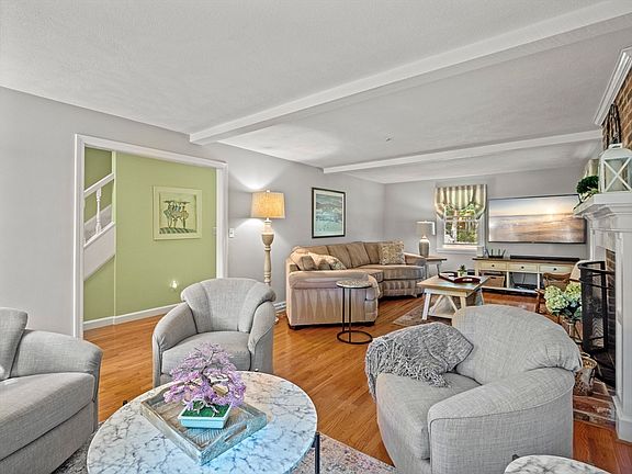 Stunning Colonial with Major Curb Appeal! The bright and airy interior is filled with natural light from numerous windows. Gleaming hardwood floors embellish the first floor. Spacious living room, complete with a cozy seating area, wall mounted smart TV (that stays) houses a brick fireplace with a detailed wood mantel. The dining room, decorated with wainscoting, is ideal for entertaining and family life. The kitchen boasts of recessed lighting, stainless steel appliances and light wood cabinetry. The adjacent family room, with floor-to-ceiling windows and scenic backyard. Upstairs are four large carpeted bedrooms and a luxurious bathroom with a heated floor. A second fireplace is found in the finished basement which serves as a bonus room which has multiple windows and its own heat zone. Garage is oversized. Conveniently located close to downtown, parks, highways, trails, and schools, this charming oasis of a home will not last!