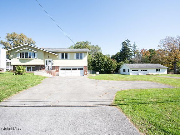 Come see this home on a .78-acre lot in the Burnt Hills School District! Car enthusiasts delight with 5 garage bays and offers a great opportunity for someone needing ample space for a home-based occupation. Welcoming family room with cozy wood-burning fireplace and wet bar. Sliding door leads to a sun-filled 3-season room. Kitchen features new refrigerator, hood, and dishwasher. 3 car attached garage and additional 2 car detached garage with a versatile 624 SF finished space ready to be transformed into your dream home office, rec room, as apartment is not allowed. It even includes a full bath for added convenience. Generator offers peace of mind and comfort. Cedar closet. Laundry hookups on first level or in heated attached garage.