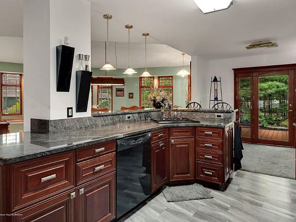 HGTV has nothing on this home. Drive up to this unique 4 bedroom California ranch on their 6 car paver and belgium block driveway situated on a corner lot. Gourmet, open concept kitchen with granite countertops. Two full baths with master bath having a radiant heated floor. Living room has a double sided see thru gas fireplace looking out to the back yard. Best of all, the six sided great room with vaulted ceilings and 9 windows looking out to the many views of hardscaping, perfect for entertaining. The beautiful and tranquil ''park like'' yard has a 10 x 23 cement pond with a double drop waterfall and a 640 sq ft deck. You have not seen a park like setting yard until you have seen this one. Plenty of room to add a pool. Don't miss it!