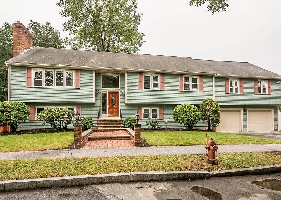 Rare 5 bed 4 bath split entry home at the top of Stoneham's desirable dead end neighborhoods! Over 3,600 sqft make this property perfect for large extended or in-law families. Top level features cathedral ceiling updated open concept living room w fireplace and kitchen. Quartz counters, stainless steel appliances, tile floors, breakfast bar / dining area w/ slide doors to deck over looking large fenced in back yard & patio. One bedroom has 3/4 bath and master suite sitting area, double closet, full walk in closet, & full master bath w/ granite double vanity. Lower level has bonus family room w/ fireplace, 5th bedroom, laundry room w 3/4 bath, large game room with garage access to 2 car garage, hot tub room and mud room have exterior access. Central AC. Attic access for storage. Plenty of off street driveway parking, full landscaping, and just installed retaining wall with new vinyl fence. Minutes to I-93, RT28, Spot Pond, Fellsway, & I-95 connector! Easy to show.