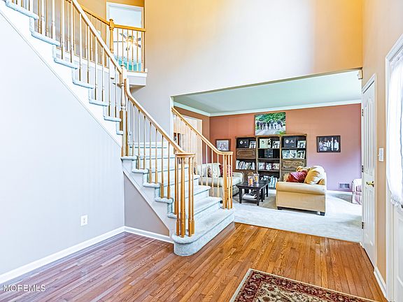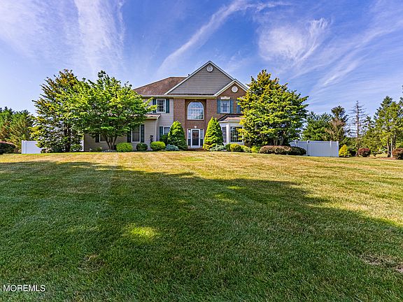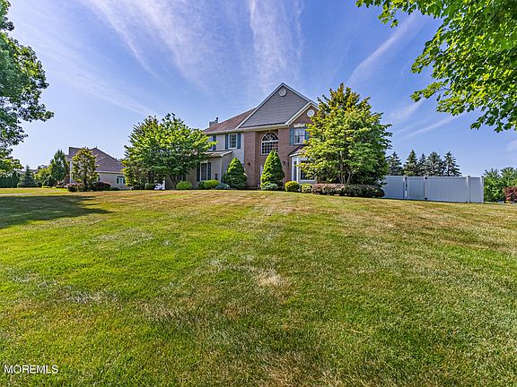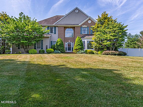 MOVE RIGHT IN TO THIS 4 BR 2.5 BATH COLONIAL. 2 STORY FOYER, SPACIOUS LR/DR LARGE EAT-IN KITCHEN W/42'' UPPER CABINETS, SS APPLIANCES, CERAMIC TILE BACKSPLASH & CENTER ISLAND ALL OPEN TO FR W/ GAS FIREPLACE. SLIDING DOOR IN KITCHEN LEADS TO HUGE COUNTRY CLUB FENCED IN YARD W/TREX DECK, BUILT IN HOT TUB, RETRACTABLE AWNING, IN GROUND POOL & HEATER 4 BRS UPSTAIRS INCLUDING MBR W/SITTING AREA, VAULTED CEILING, WALK-IN CLOSET & GORGEOUS NEWER MBATH WITH STALL SHOWER & FREE STANDING TUB. FULL BASEMENT HAS LARGE THEATER ROOM ALONG WITH 2 OTHER ROOMS. LARGE UNFINISHED AREA OFFERS PLENTY OF STORAGE OR WORKSHOP AREA. 2 ZONE HVAC, 2 CAR GARAGE ALL THIS ON A QUIET CUL DE SAC IN A WONDERFUL NEIGHBORHOOD W/ EXCELLENT FREEHOLD TWP SCHOOLS