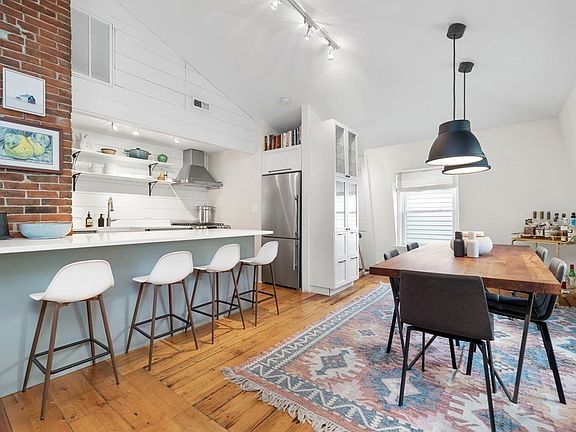Setback on a quiet Somerville dead end street between Porter, Union, and Davis Squares, reveals an incredible top level 2 bedroom condo with high ceilings, tons of windows, style and original character. A shiplap accent wall and gleaming wide-plank pine floors, bring together open floor plan into one grand space perfect for entertaining. The chef's kitchen features exposed brick, custom cabinetry, quartz counters, updated stainless appliances, a coffee bar and plenty of hidden storage. The bathroom was redone in 2019, including new marble tile flooring, marble-topped vanity, lighting and mirror. New in-unit laundry, ample basement storage, a large private roof deck and patio, perfect for entertaining friends and family, round off this incredible offering. Easy access to Porter Square's Red line and Union's Green line, and their many shops, restaurants and cafes. Morse Kelley park is right across the street. A short walk to the Somerville Community Path. Near Mass Ave, Rt 2 and I-93.