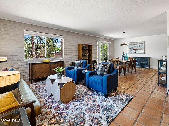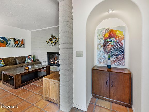 Midcentury modern ranch rambler on over 1/3 of an acre in the heart of West Sedona where AIRBNB is allowed. Nestled on a heavily treed lot this 1970 updated gem offers moderate red rocks views. Home boasts Saltillo tile and concrete flooring throughout. Living room with wood burning fireplace - cozy up here with a cup of cocoa! Main living area is a combination of living/dining/kitchen with sliders that open onto a front elevated full length front open patio with views. Enjoy the night sky here! Large 2 bedrooms with views, loads of closets and chic updated bathrooms. Home is finished with a laundry room, a converted heated and cooled office that could easily serve as a 3rd bedroom for overflow guests, and a 1 car garage. Within walking distance to eateries, restaurants, and the Sedona library, this darling sweet home is perfect as your Sedona Get away, your investment property. If home is where the heart is and your heart is in Sedona, this sweet gem is love at first sight!