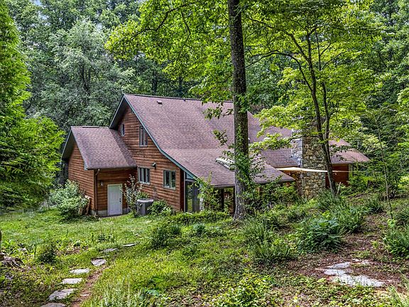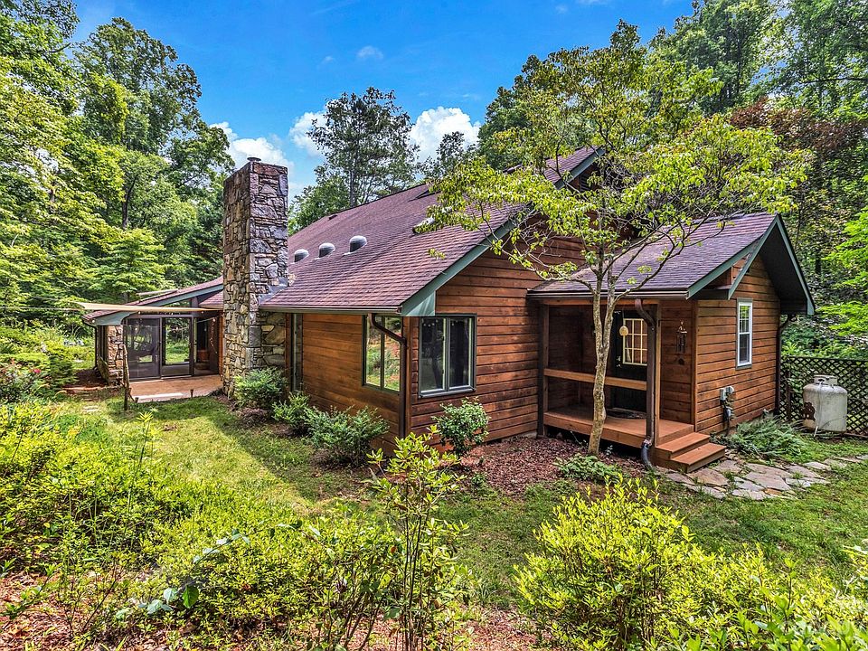 Imagine living in your own private 4 acre retreat, surrounded by trees and nature, yet only a 15 min drive to Asheville or Black Mountain. With many miles of hiking trails right out the back door, this property is a true sanctuary. Sunny, expansive 3 bed 2.5 bath home with additional office/flex space, master bedroom and bath on main with separate entrance, screened in lanai, spacious 2 car garage and TONS of storage. Tucked in the trees in the back of the property you'll find the standalone 330 sf cabin with fully functioning eco-outhouse and a sitting porch, just right for the artist or writer's retreat or additional rental income. Mostly flat acreage, garden beds, plenty of sun as well as forest, a seasonal creek, a tapped spring and numerous zones for outside gathering including two fire pits with seating areas. Several iconic Swannanoa River swimming holes just a few minutes away. A gardener/entertainer's dream! No drive-by please. By appointment only.