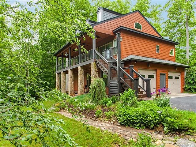 A unique hideaway in a beautiful mountain backdrop! Gorgeous setting on over 1.5 acres features two ponds, rustic gardens, and a mini-cabin that can be used as an office, art or yoga studio! Step inside the main house to a spacious open floor plan with hardwood floors, a striking floor to ceiling stone fireplace, and vaulted ceilings. This 3 bedroom, 2.5 bath home is exceptionally clean and boasts many amenities including: an open kitchen with granite countertops, custom cabinetry, large windows and sliding glass doors, wired speaker system, and skylights. The spacious master bedroom and luxurious ensuite are located on the main level, as well as access the wrap around porch. The lower level has two bedrooms (currently used as media room and office) with oversized closets, bathrooms and access to the lower covered deck. Just 15 minutes to Weaverville and less than 30 to downtown Asheville. This home is truly one of a kind!