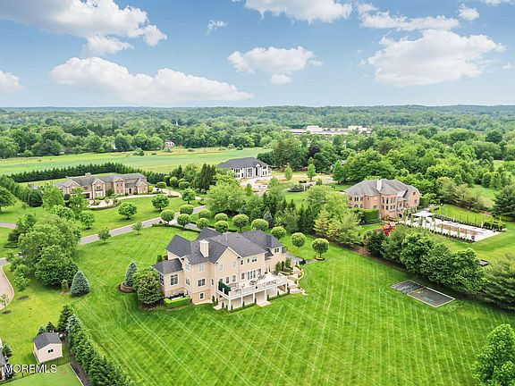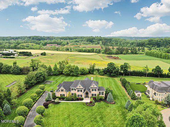 Welcome to 10 Hop Brook Lane, Holmdel - Where Luxury Meets Lifestyle. Set on approximately 2.5 private acres that back up to the serene Fox Hollow Vineyards, this magnificent estate offers over 12,000 sq ft of meticulously renovated living space across three stunning levels. With 6 bedrooms (including a first-floor guest suite), 5 full and 1 half baths, and 10-foot ceilings on first floor and 9 foot on 2nd, this home effortlessly blends grandeur with comfort. The heart of the home is a state-of-the-art gourmet kitchen an entertainer's dream featuring 2 full-sized refrigerators, a built-in coffee maker, ice maker, stainless steel appliances, custom granite countertops, and a sleek glass backsplash. Upstairs, you'll find 5 spacious bedrooms, each thoughtfully designed for comfort and and privacy. The primary suite is a luxurious retreat with spa-inspired features. The walk-out lower level spans approx. 4,200 sq ft and is fully finished with a movie theater, gym, recreation space, and a bar area, all leading to a covered lower patio perfect for year-round enjoyment. Step outside to an upper patio with a built-in grill, sink, and a 7,000 BTU gas fire pit all overlooking your picturesque backyard oasis. The only thing left is to design your dream pool. Surrounded by multi-million-dollar estates, this is a rare opportunity to own one of Holmdel's finest homes completely reimagined and rebuilt within the last 5 years. Luxury, privacy, and unforgettable entertaining spaces await you.