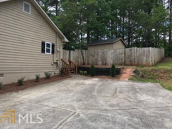 Adorable Ranch on wooded corner lot with rocking chair front porch. New paint and Flooring in Kitchen. Split Bedroom arrangement and great storage in floored attic. Nice open living area and laminated wood floors through out living area and bedrooms. Private Fenced back yard with large storage building or Shop. Convenient to Downtown and bypass and to I-85.