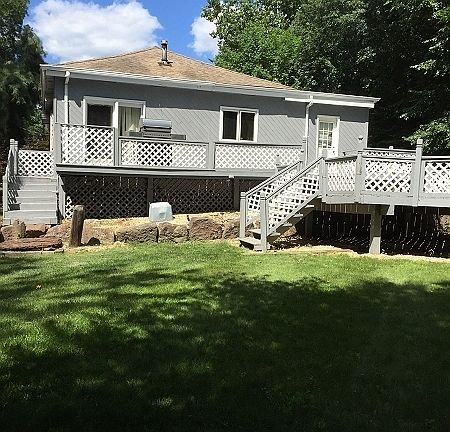 Cash or 203 K LOAN (conventional will be discussed) -Contractors dream Ranch on private road surrounded by Green Acres nestled back Off road. Business owners dream offers a large workshop & full garage with multi parking in driveway and on lot.Home features 3 br 1 1/2 baths and 1 room that can be a bedroom or office. Newer kitchen offers stainless steel appliances, granite counter tops, and tumbled marble backsplash w / sep dining area. In addition the home boasts LivRm/ DinRm & Fam Room with cathedral ceiling. Central air through out. Beautiful over sized deck and nice yard. Huge property. Golf down the road!! Buyer responsible for Certificate of occupancy & Smoke. Sold as is. No oil tank. Septic in need of repair however not an entire replacement.