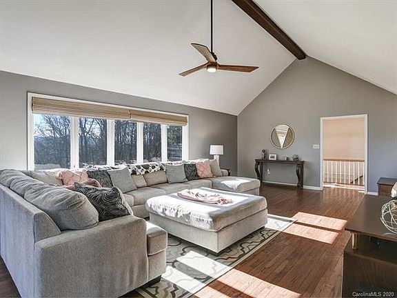 Lovely 3 Bedroom, 3 Bath home offering year round mountain views from almost every room! Just minutes from town on almost an acre lot with newly installed privacy fencing and fire-pit area. Beautiful stonework entrance with bright, open living room with hardwood floors and vaulted ceiling. Updated brushed stainless appliances in kitchen with great counter space. Formal dining room with such character with stone fireplace and built-ins, sliding glass doors to large over 375 sf deck. Master en-suite offers cathedral ceiling with great light, updated master bath with glass in tile shower and double vanity, and to top it off, a loft area for office, nursery or artist studio. Lower level offers many options such a family room, guest quarters, home office and offers a stone fireplace, laundry room, tons of great storage, full bath and oversized two-car garage with newly epoxied flooring. App. 20 mins to Asheville and only minutes to shopping, restaurants and schools. City and county taxes.