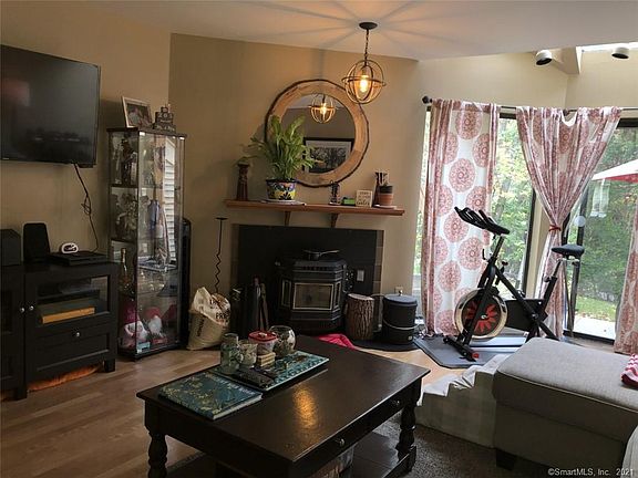 Welcome home to this comfortable 2 story Townhouse in conveniently located Plumtree Heights Complex. Close to the charming Town of Bethel with a train station, walking Village with shops, Restaurants and all todays modern conveniences. Features include Living Room with laminate Flooring, pellet stove to keep you warm on chilly days and sliders to an open patio for summer relaxing. Living/Dining Room combination to enhance the open floor plan feel. Updated kitchen also has an eating area with window overlooking the front of the unit. 2 bedrooms plus bath upstairs and hallway all have wall to wall carpeting. This unit is on a culdesac location with privacy. Call for showings as there are dogs who need to be taken out!